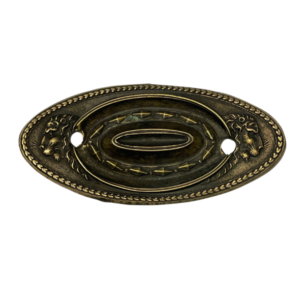 Oval or round  plate handle with 2 posts , sold complete with grip          Suitable for chest of drawers etc